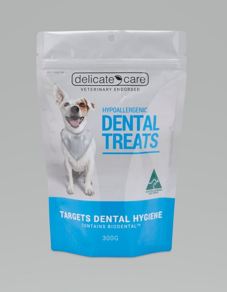 Along with a diet that is endorsed by vets like Delicate Care you want to give your dog Dental Treats too. Such treats are tasty so your dog will enjoy them, while supporting dental hygiene and the benefits of a fresher breath. Our Delicate CareTM Hypoallergenic Dental Treats are scientifically formulated for maximum dental benefit.