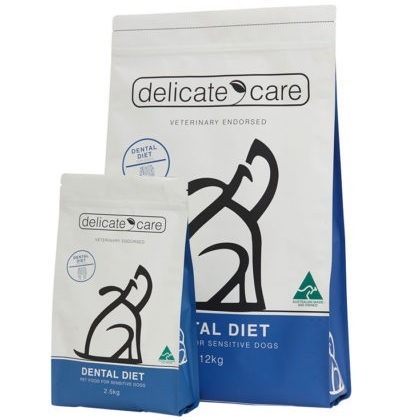 We have a Delicate Care™ Dental Diet for Dogs which is specially formulated to provide complete and balanced nutrition for adult dogs while at the same time promoting dental health. Delicate Care™ Dental Diet for Dogs is a limited ingredient diet, making it ideal for dogs that suffer from skin sensitivities. It is a perfect complement to the dental management plan prescribed by your Veterinarian and is suitable for lifelong use.